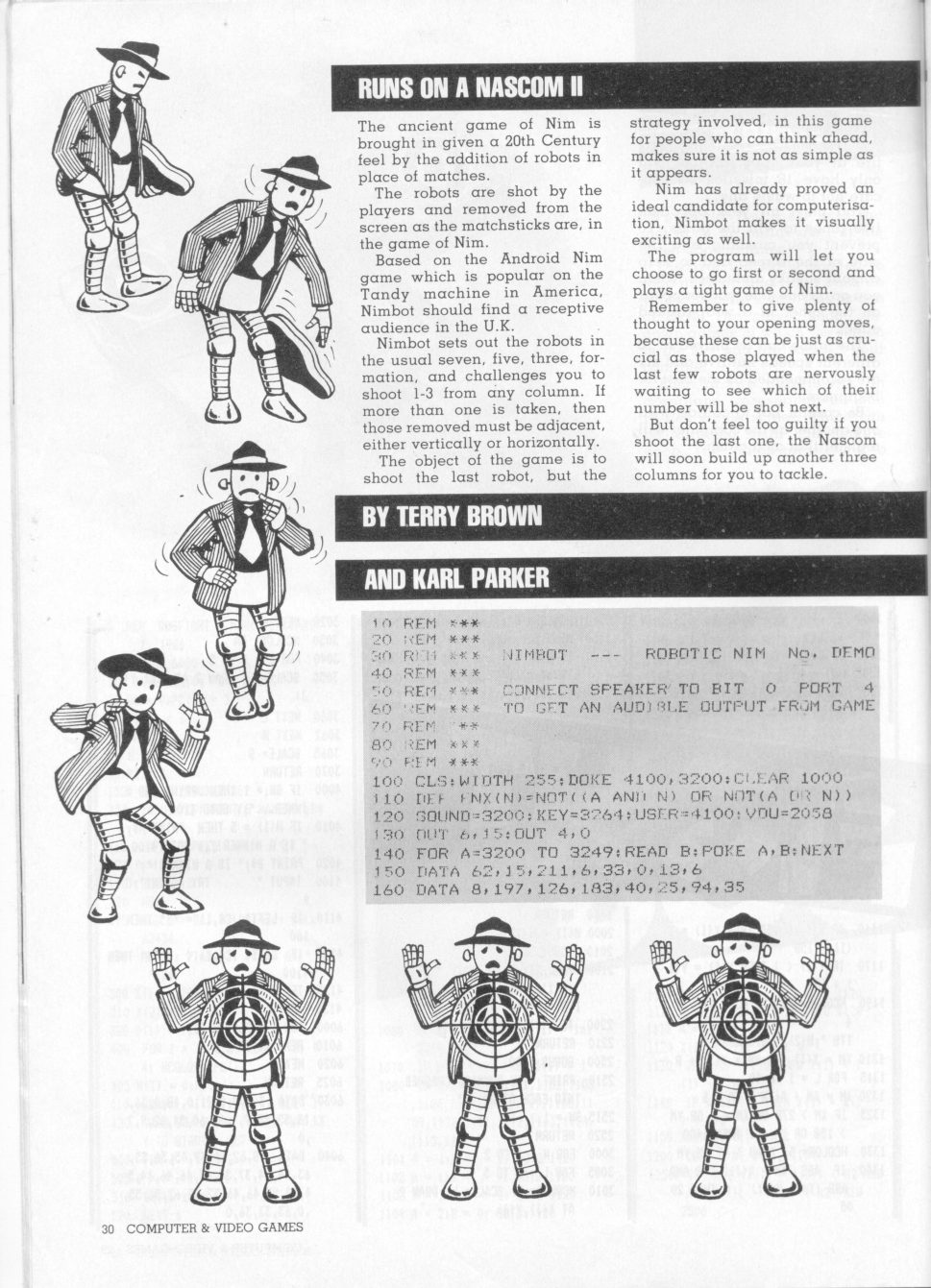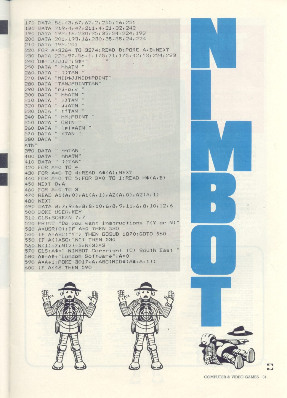 When C&VG asked for permission to publish NimBot, they didn't ask for any help with the graphics - they just printed it. I laughed when I saw the copy : ``Have fun typing that in!"
