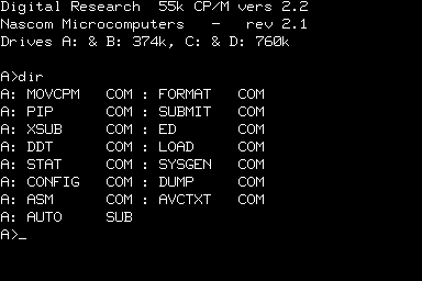 CP/M 2.2 on a Nascom 3 with screen editing 1982. |